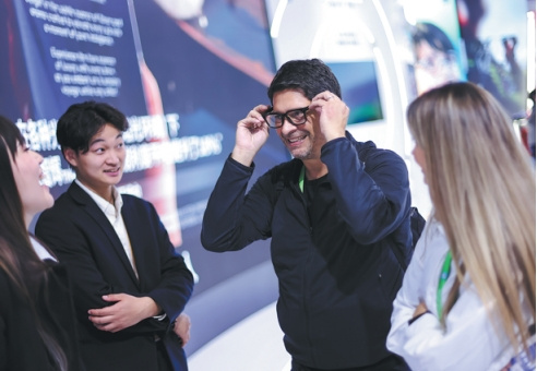 Visitors at the eighth CIIE in Shanghai take an interest in Essilor-Luxottica's Nuance Audio Glasses, a product that combines cutting-edge audio-visual technologies. The spillover effects from pas