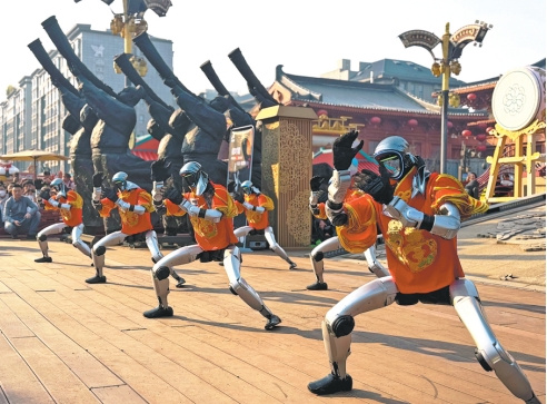Unitree humanoid robots perform martial arts at a tourist attraction in Xi'an, Shaanxi province, last week.